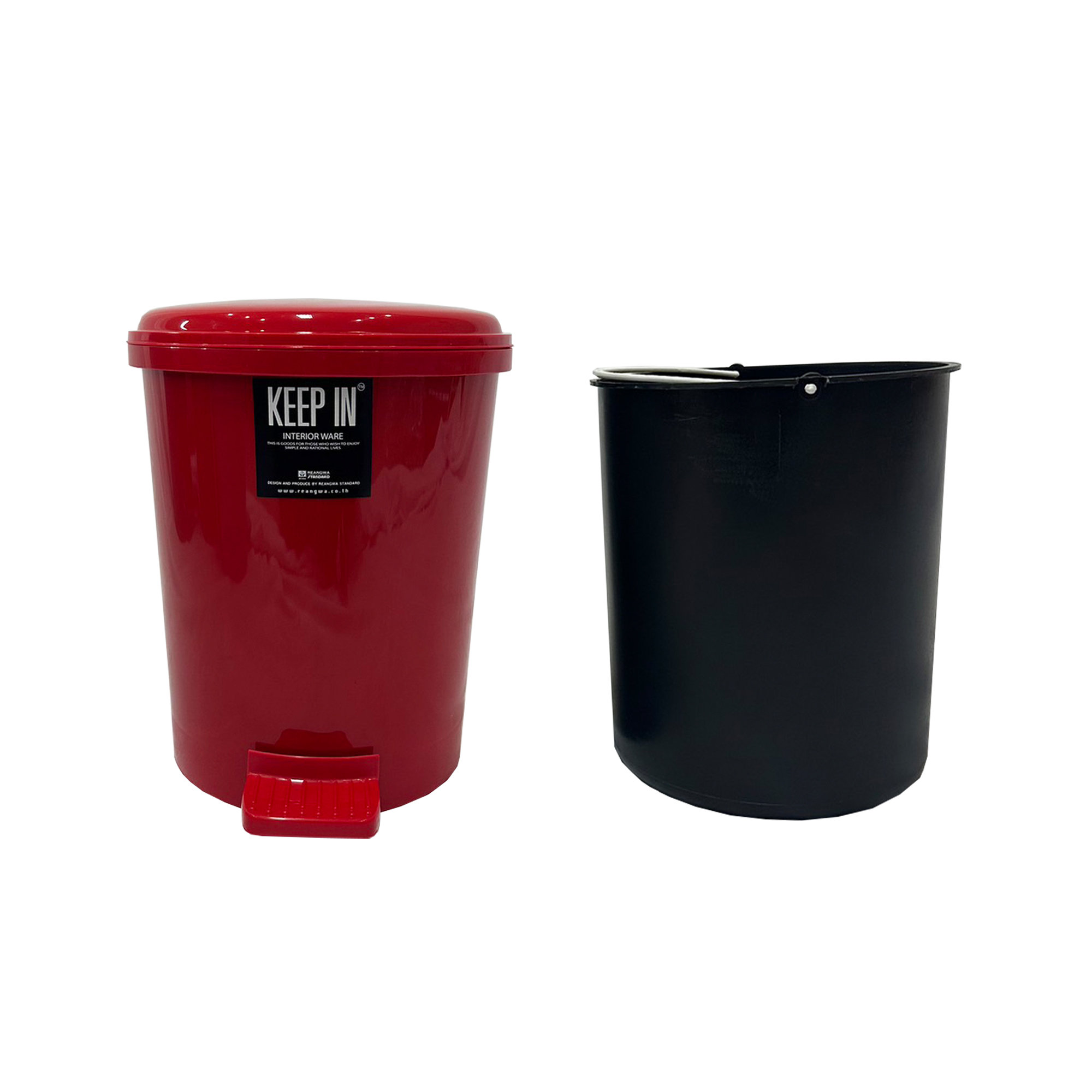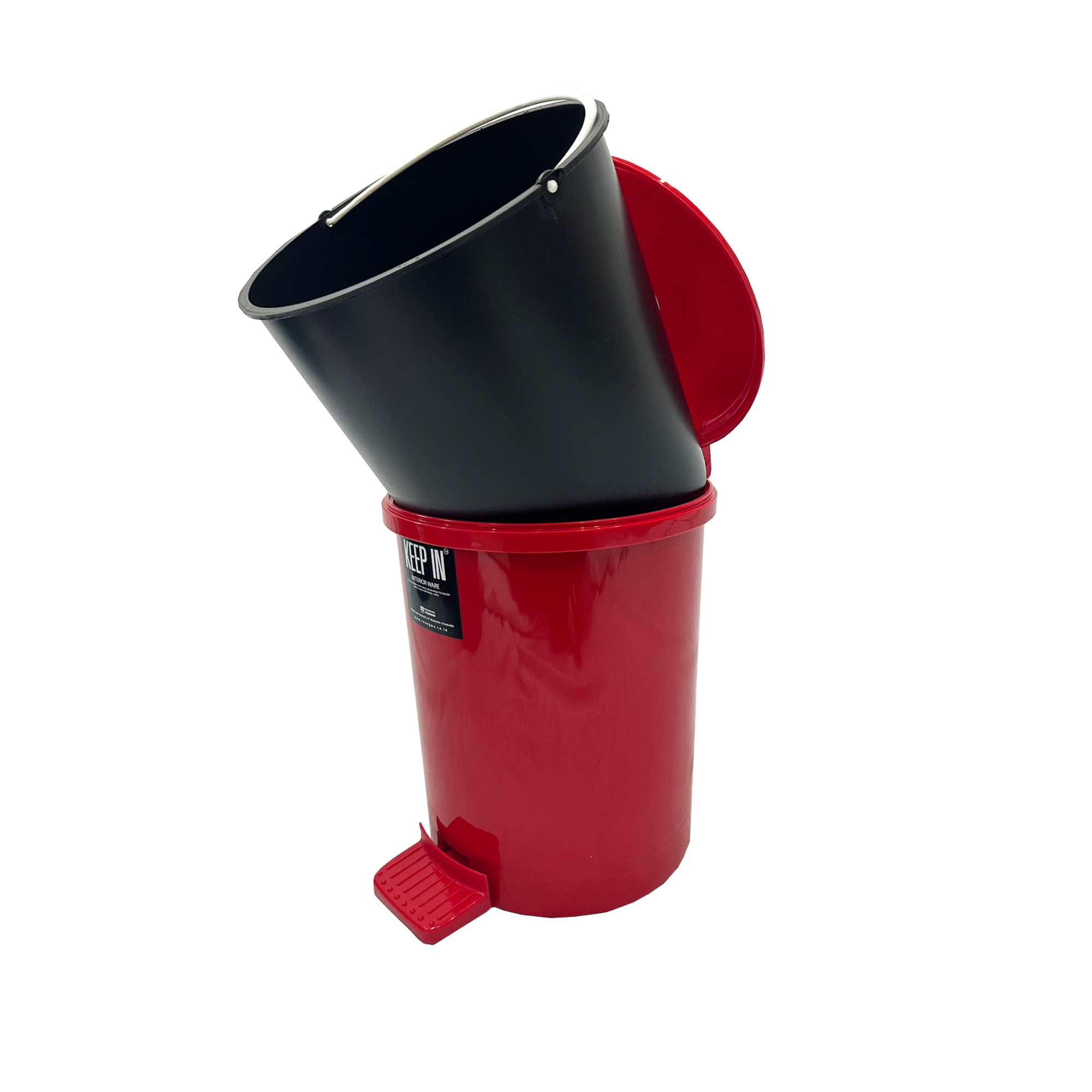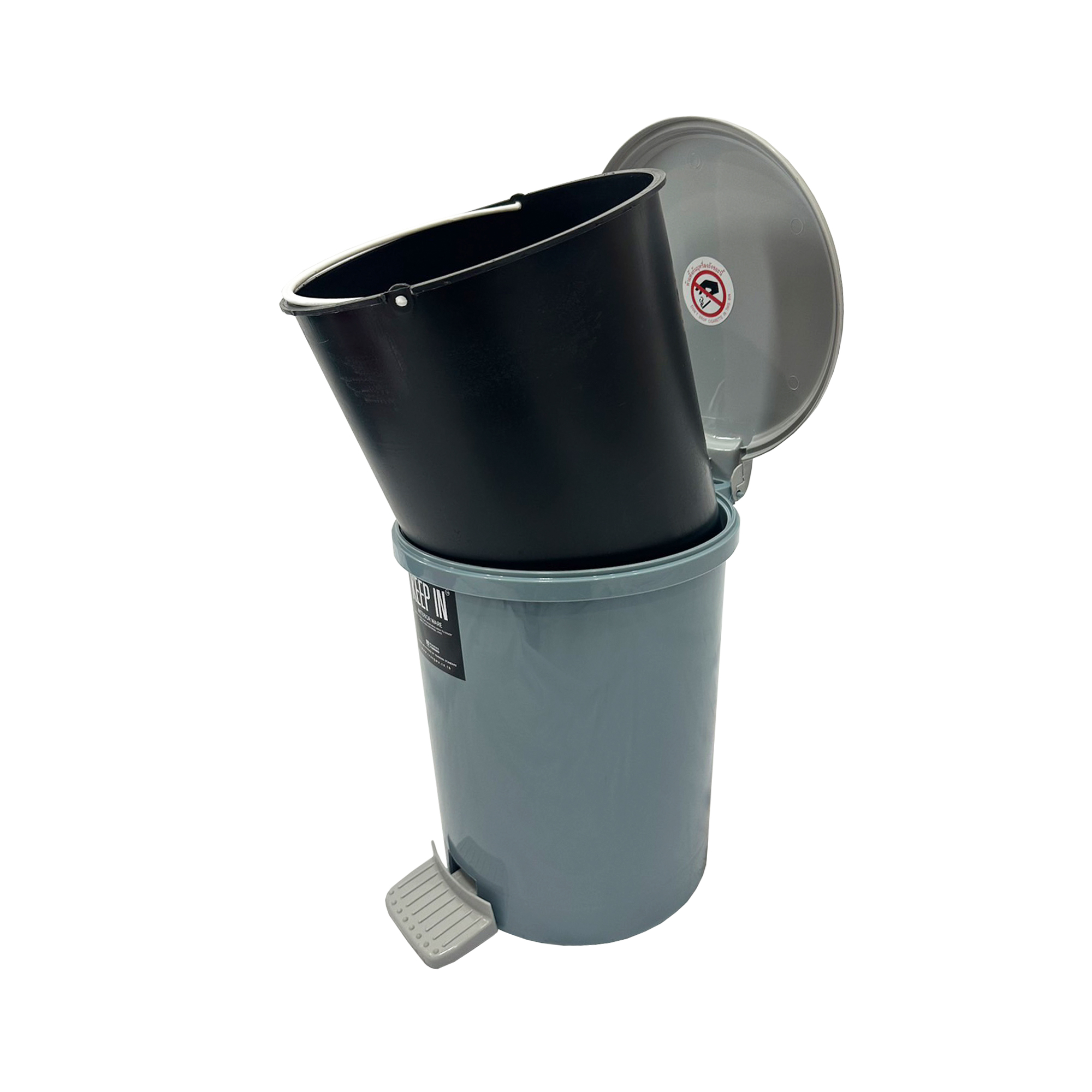 ถังขยะแบบเหยียบทรงกลม มีฝาปิดสนิททนทานกันกลิ่นและแมลง มีถังขยะสำหรับยกออกมาทิ้งซ้อนอยู่ด้านใน สามารถทำความสะอาดได้ง่ายขึ้น ผลิตจากพลาสติก เกรด A แข็งแรงทนทาน