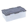 Storage box with locks, low shape, PN3412. The box is made of thick plastic. square The lid is locked completely. can be stacked Increase storage space, packing size 52 liters, size width 46.2 x length 73 x height 21 cm.