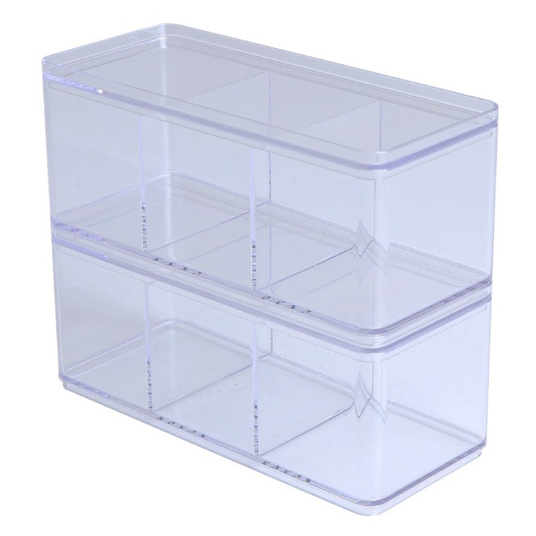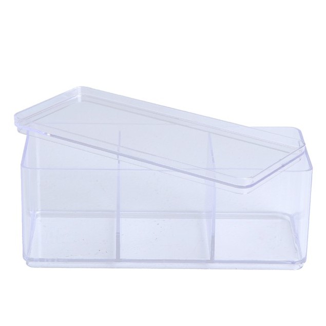 Clear square box with 3 compartments, made from quality grade polypropylene plastic. The box has good toughness, impact resistance. not easily broken low box Suitable for storing items such as cotton wool or model sets, etc. Easy to clean. can be stacked
