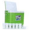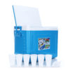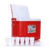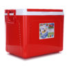 กระติกน้ำแข็งสี่เหลี่ยมขนาดใหญ่พร้อมหิ้ว ผลิตจากพลาสติกและอัดโฟม เพื่อให้สามารถเก็บอุณหภูมิไว้ได้นานกว่า 8 ชั่วโมง สะดวกในการเคลื่อนย้ายและพกพาเดินทางไปนอกสถานที่ได้อย่างดี