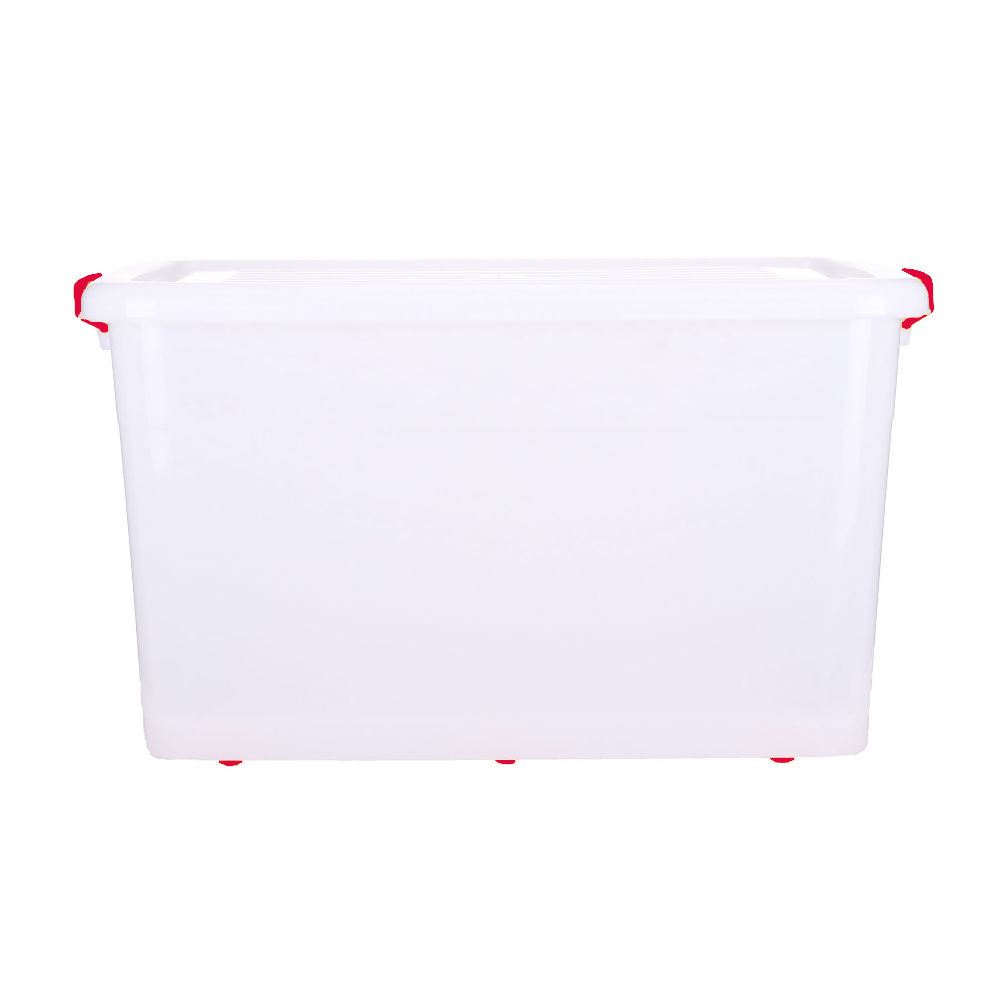 กล่องพลาสติกใส่ของเอนกประสงค์เหมาะสำหรับใช้จัดเก็บของต่างๆ เพื่อช่วยเพิ่มความเป็นระเบียบภายในบ้าน หรือพื้นที่ใช้สอยส่วนตัวได้อย่างลงตัว เนื้อพลาสติกเกรดเอขุ่นเพื่อบังตาไม่ให้เห็นของที่เก็บชัดเจนนัก เพื่อความสวยงามและง่ายต่อกาค้นหา มาพร้อมฝาปิดล๊อคได้เพื่อป้องกันแมลงและฝุ่น ฝาออกแบบมาให้มีช่องเว้าสำหรับวางล้อ สามารถรับน้ำหนักเวลาซ้อนทับกันได้ดี