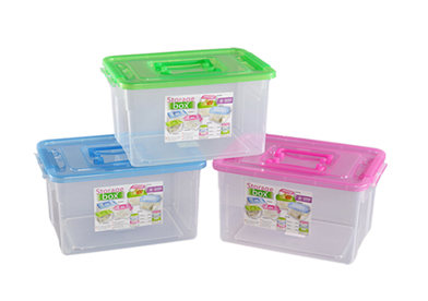 กล่องเหลี่ยมหูหิ้ว PN3406/1 กล่องทรงเหลี่ยม สีขาวใส พร้อมฝาปิดและที่หิ้วในตัว ใช้สำหรับใส่สิ่งของอเนกประสงค์ ขนาดบรรจุ 13.8 ลิตร