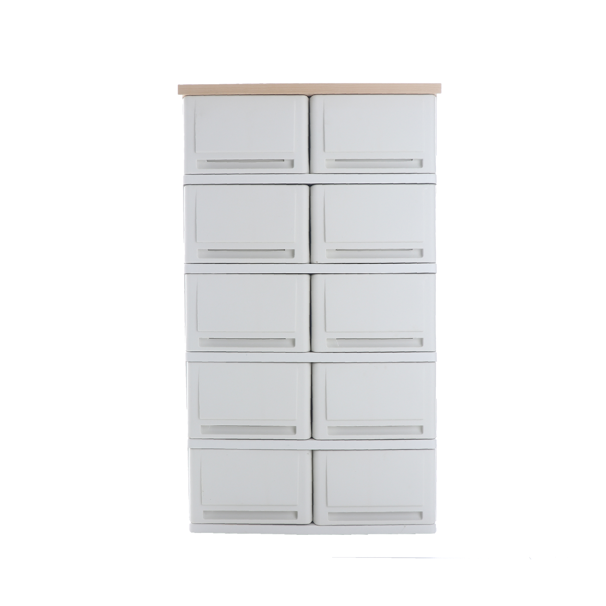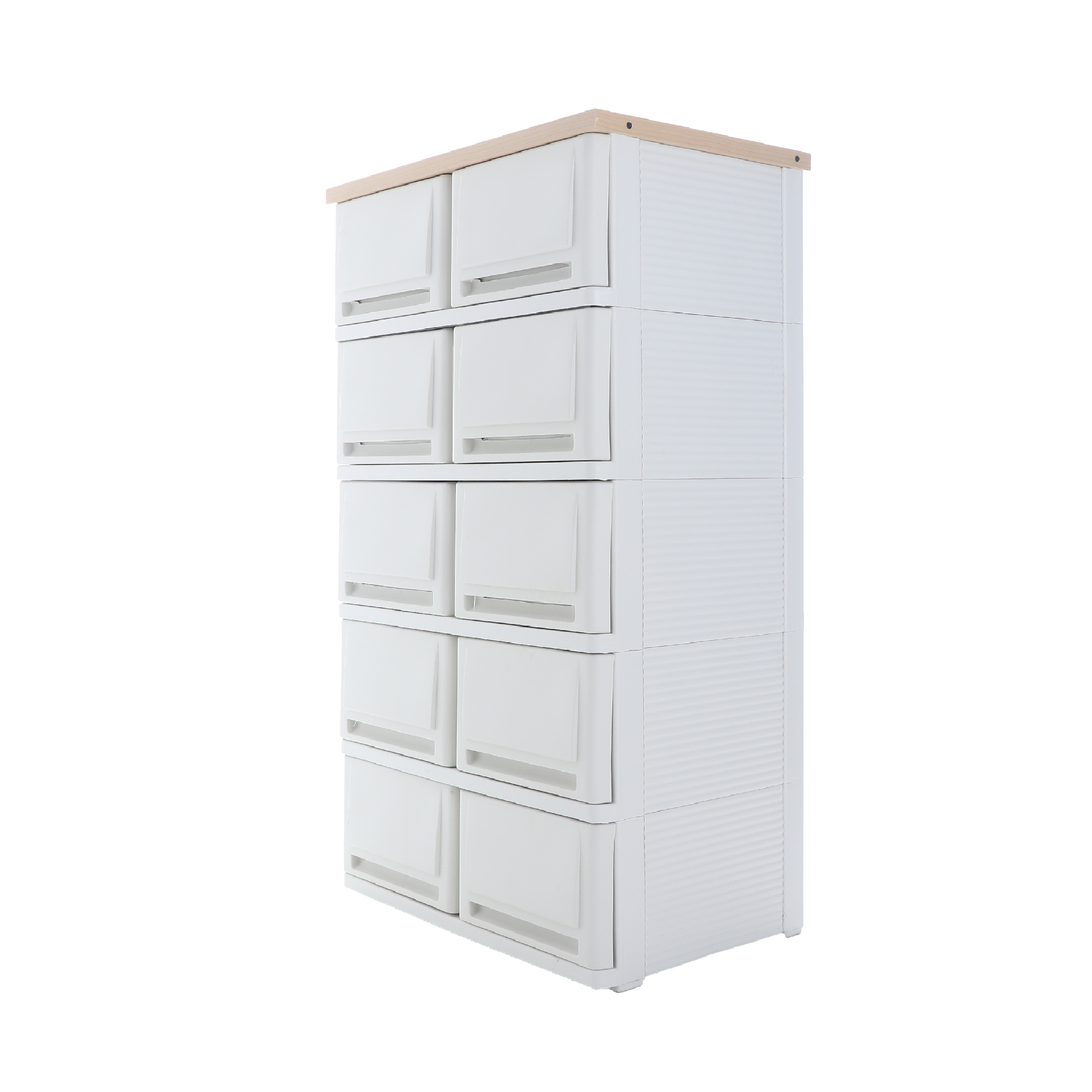 Wide chest of drawers, solid side walls, wooden top cover with laminate finish. Designed to be beautiful and strong, able to support good weight, the side frame is made of solid plastic all around. to prevent dust and insects No worries about termites.