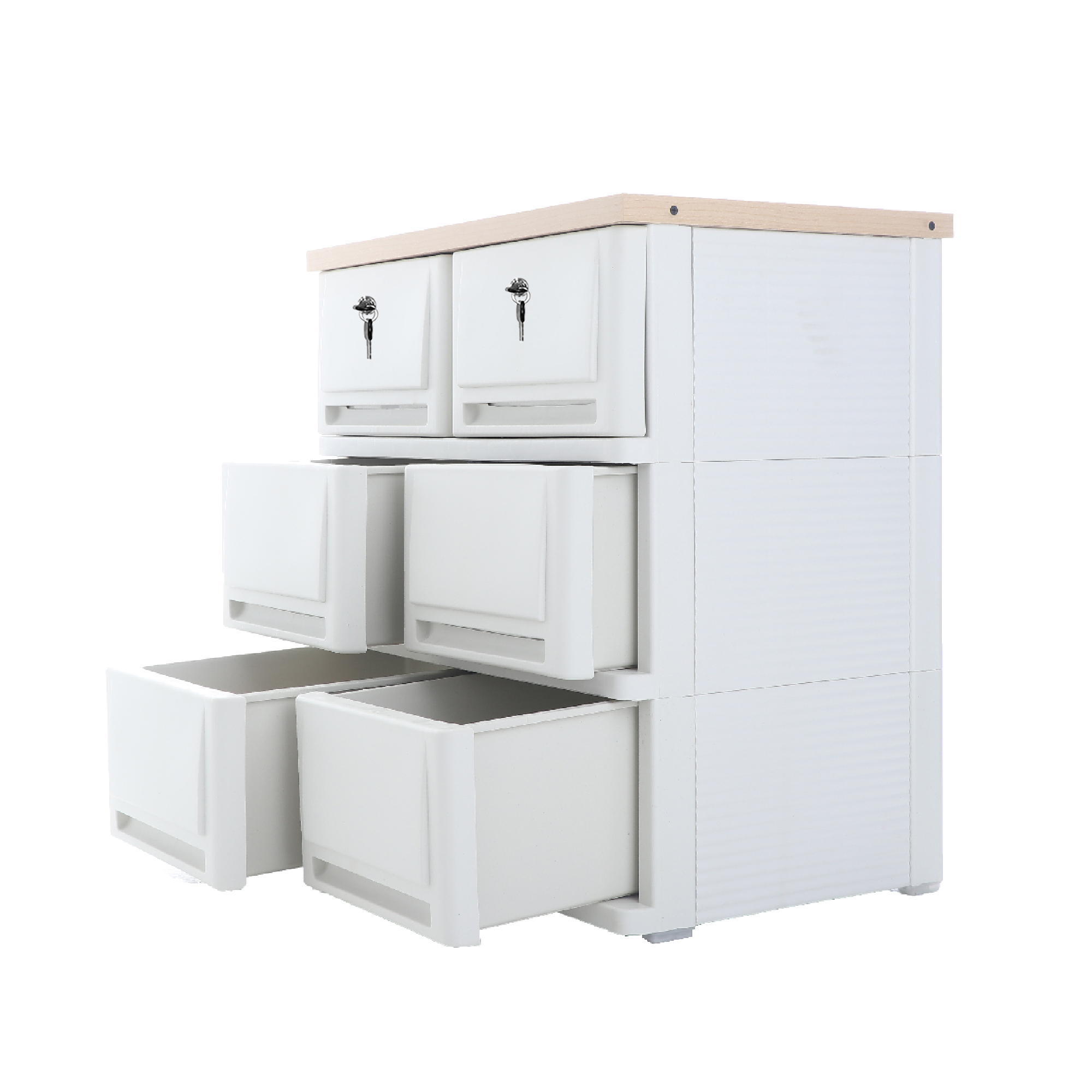 Solid wall chest of drawers The lid on the wood is covered with wood laminate. Designed to be beautiful, neat and strong, easy to bring into the interior, strong and able to carry weight well. The side drawer frame is made of opaque plastic all around. to prevent dust and insects No worries about termites.