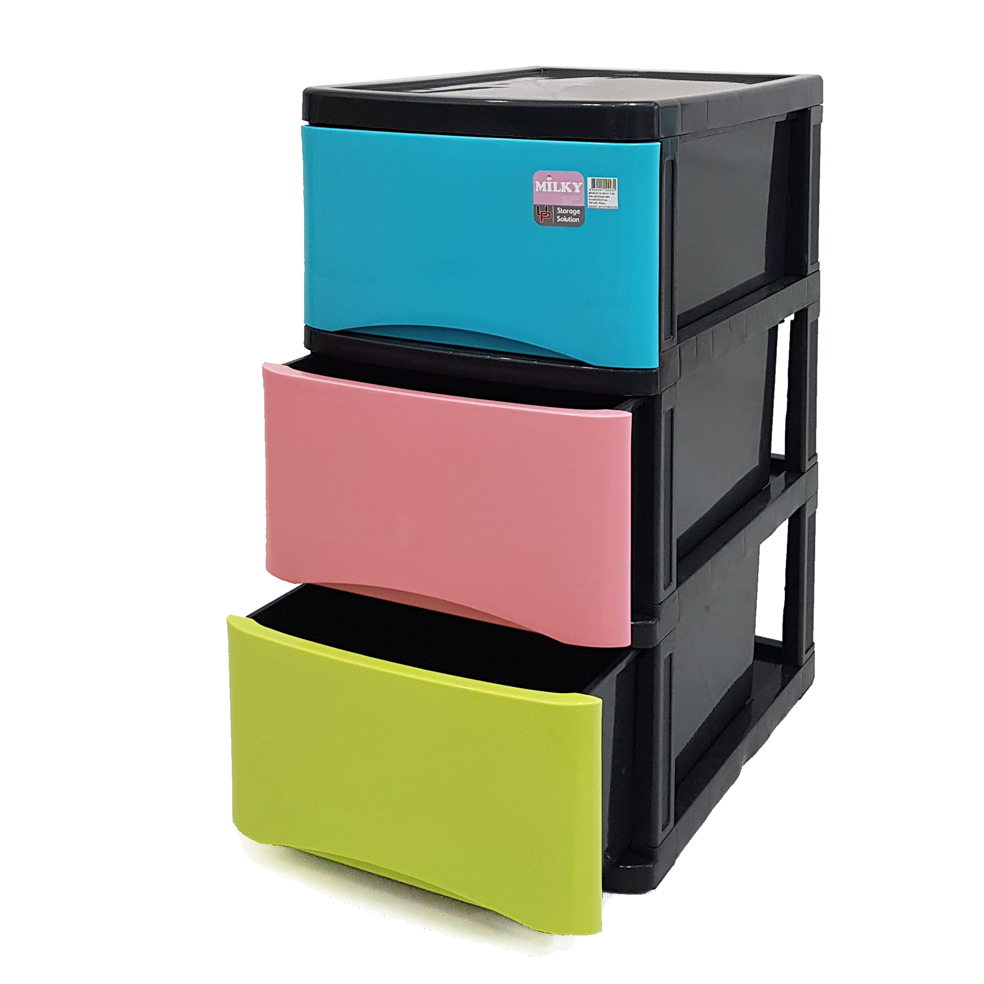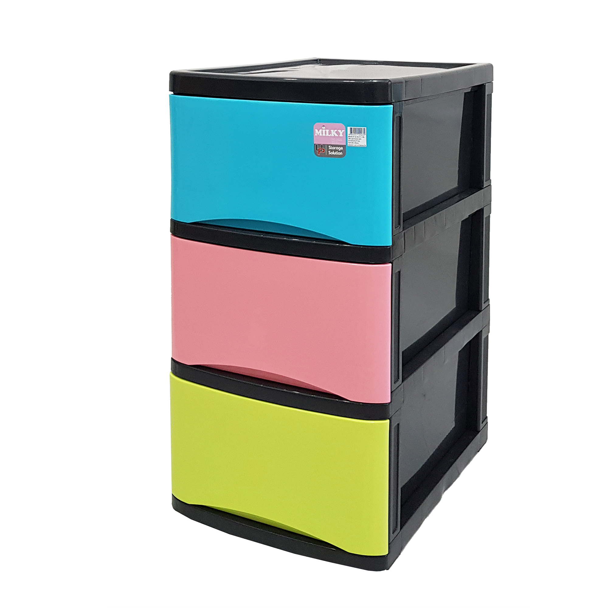 Colour: Black frame, pastel drawers.