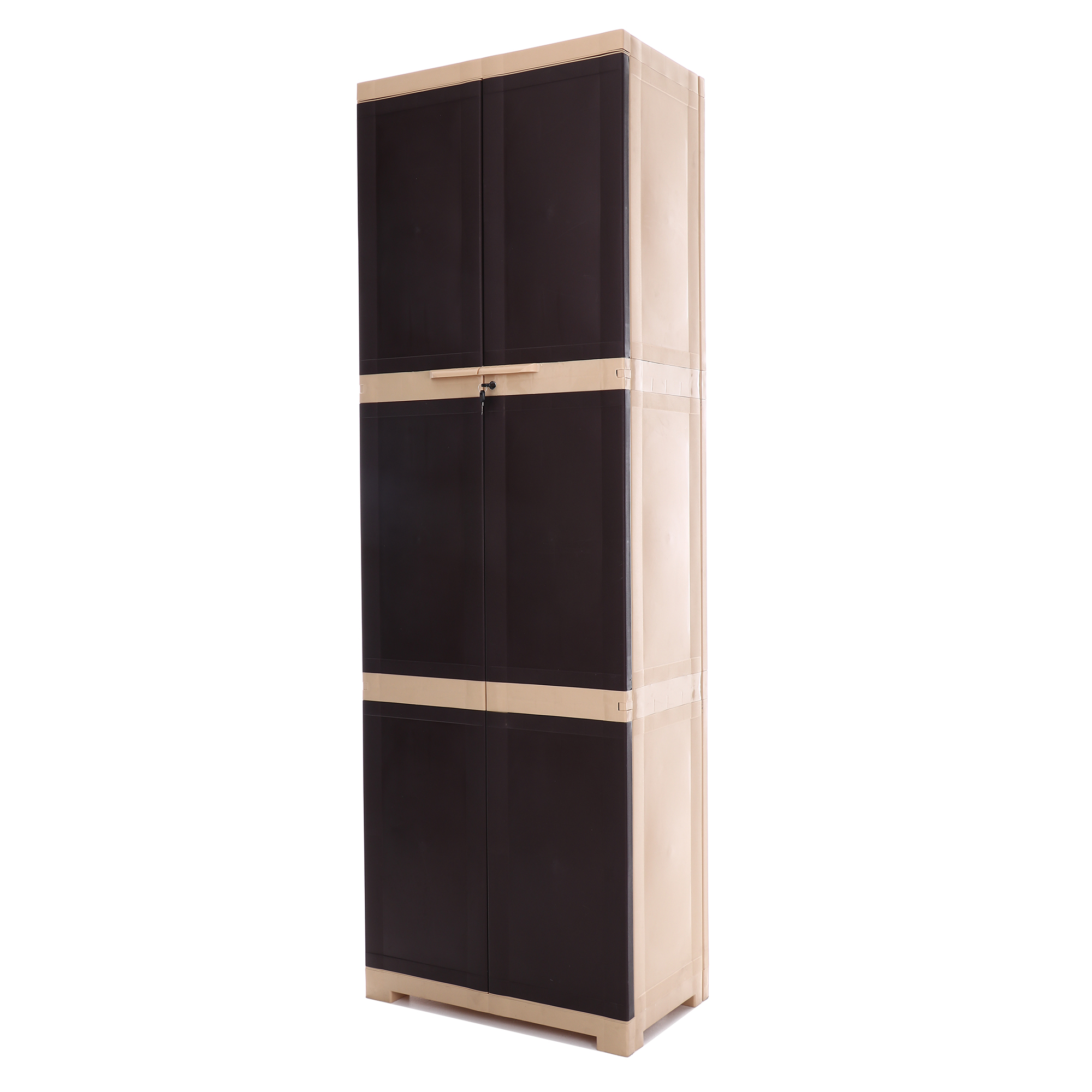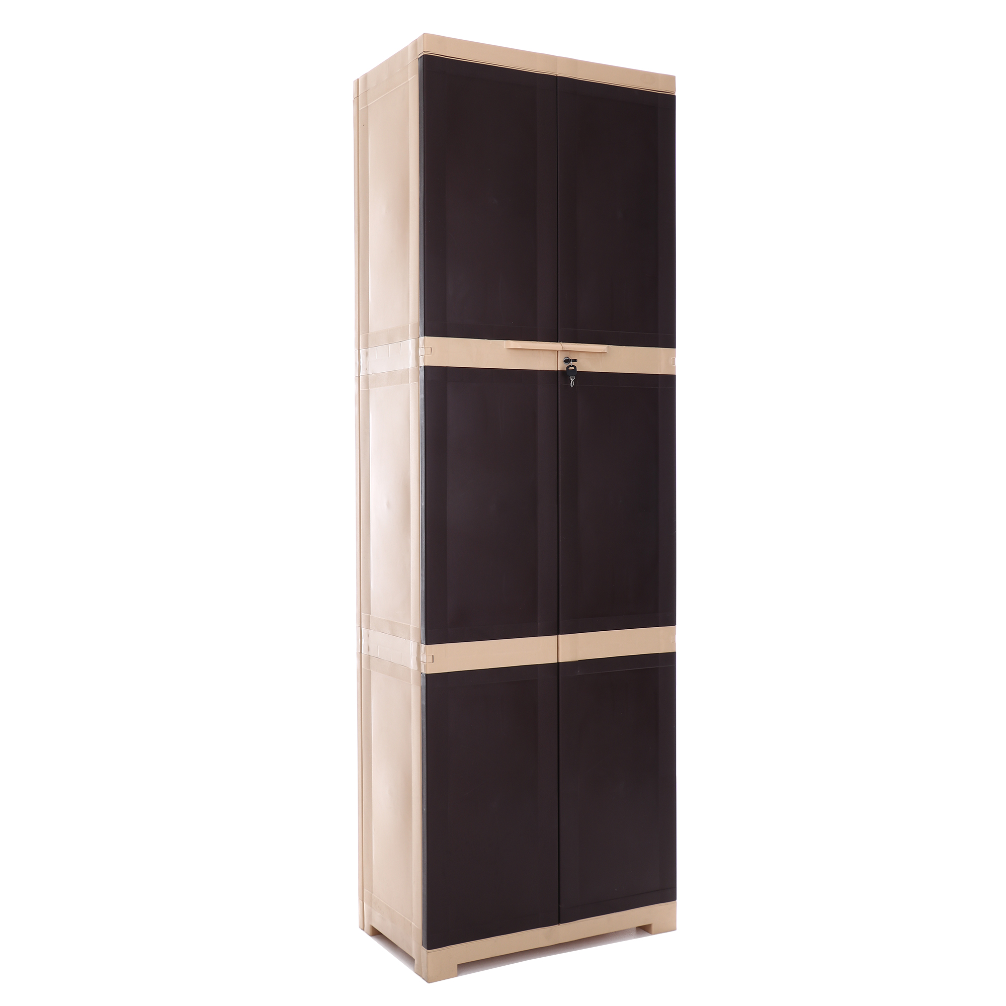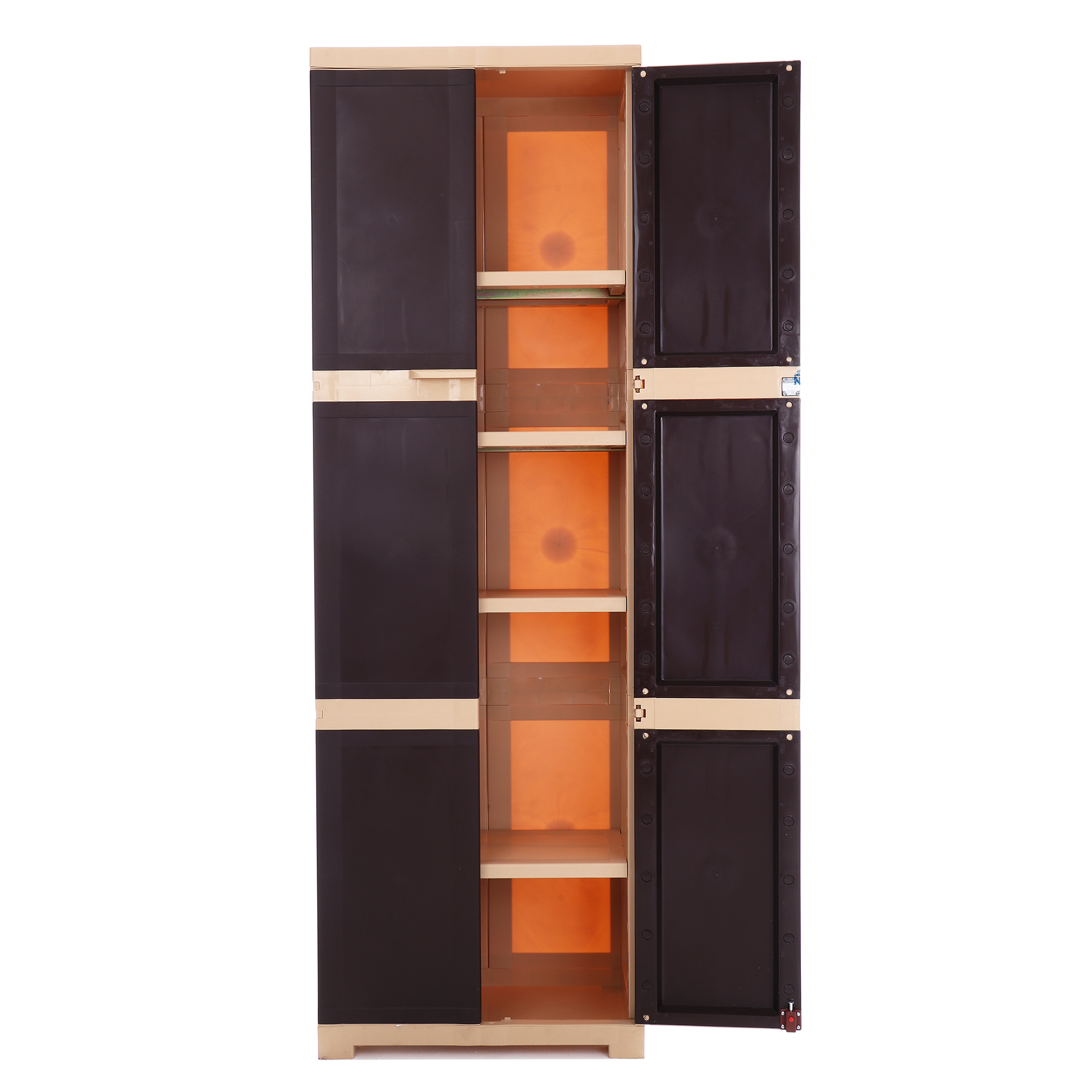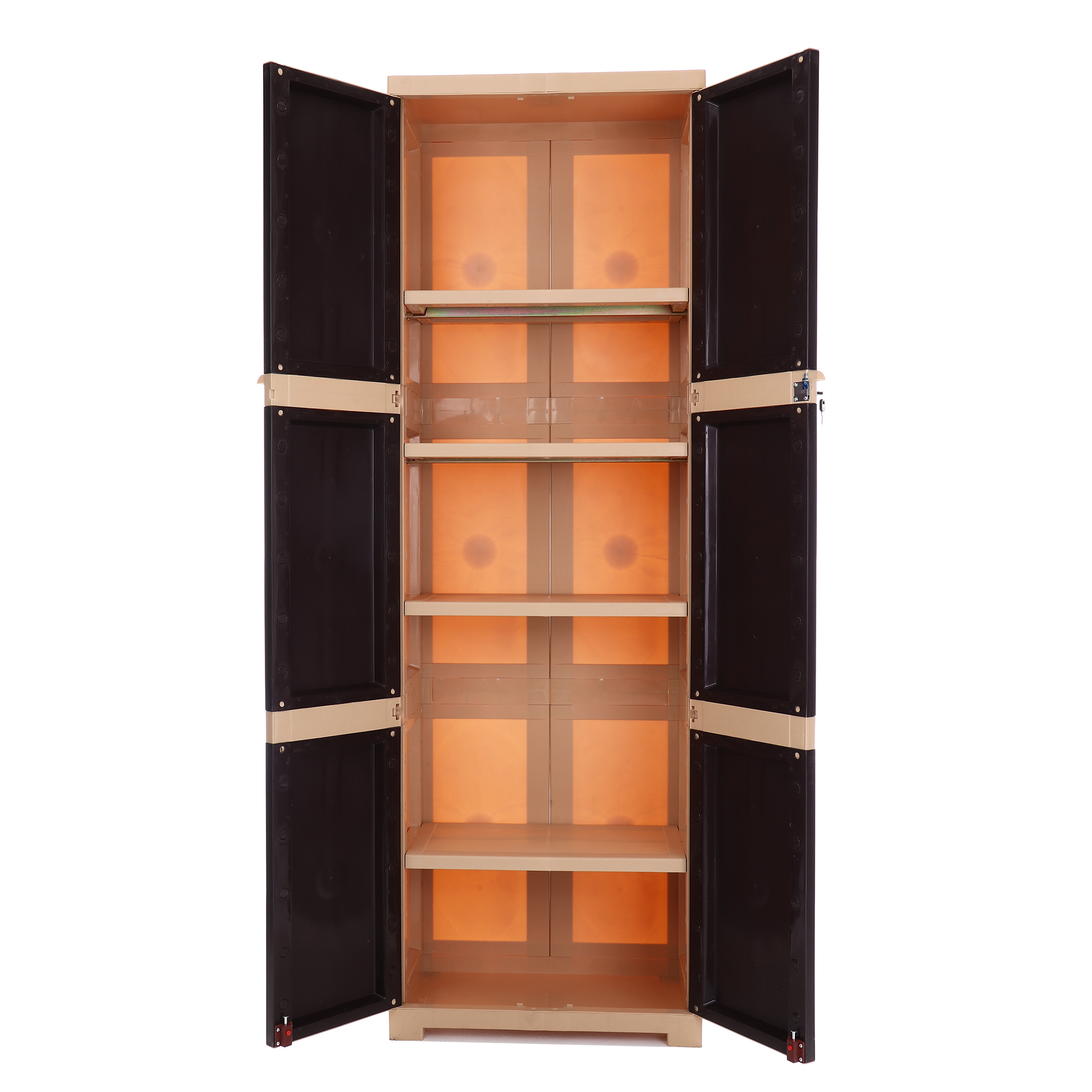 multipurpose cabinet with open-close doors There is a key to lock the cabinet. There are 4 shelves inside, which helps to increase the orderliness in storing things.
