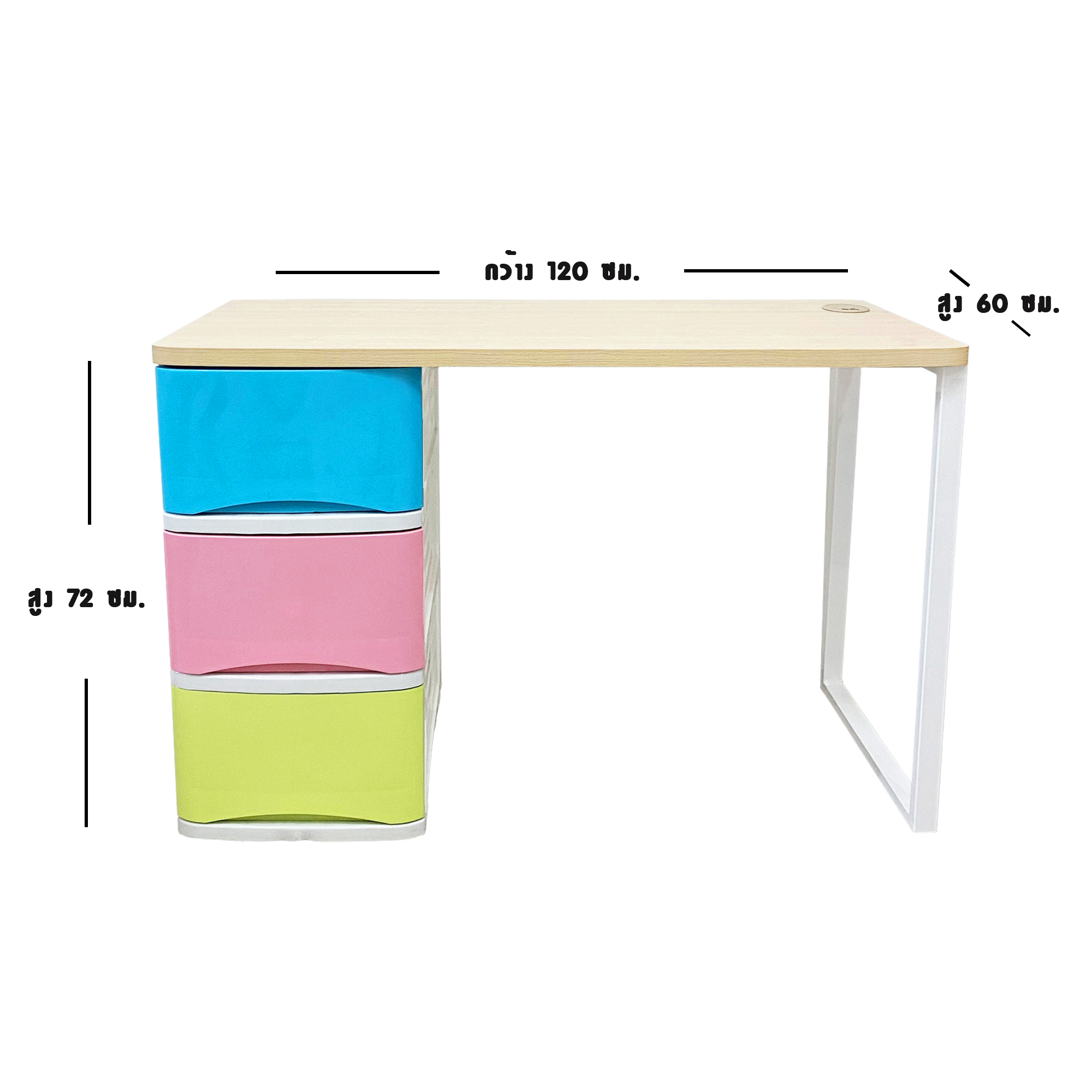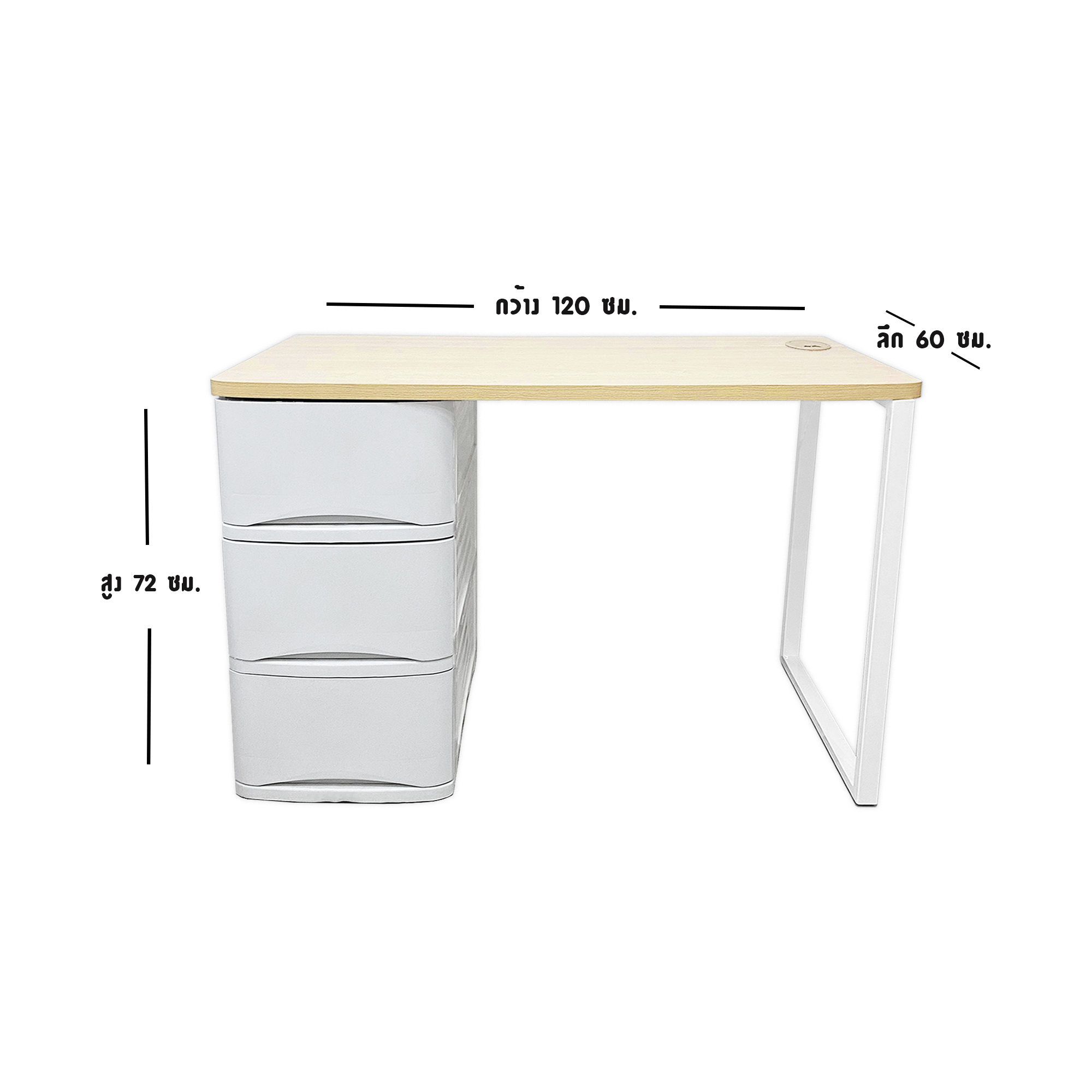 – ขนาดโต๊ะพร้อมลิ้นชัก : กว้าง 60 x ยาว 120 X สูง 72